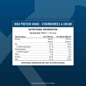 Mỗi chai Applied Nutrition High Protein Shake pha sẵn cung cấp đến 20g protein giúp thúc đẩy quá trình nuôi dưỡng và phát triển cơ bắp diễn ra nhanh chóng. Đặc biệt, sản phẩm chứa rất ít chất béo (chỉ 0.3g) đảm bảo không ảnh hưởng đến quá trình siết cân, giảm mỡ của người dùng.