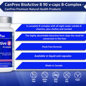Canprev BioActive B là nguồn cung cấp vitamin B hoàn chỉnh mà cơ thể bạn cần để hỗ trợ năng lượng, chức năng miễn dịch, sức khỏe gan, trao đổi chất và vô số quá trình trao đổi chất khác cần thiết cho sức khỏe tối ưu. Chúng được phân phối ở dạng hoạt tính sinh học ưa thích để giúp theo kịp nhu cầu. Những vitamin B sẵn sàng cho cơ thể này đặc biệt cần thiết trong thời gian căng thẳng về thể chất và tinh thần.