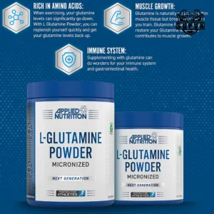 Glutamine là loại Amino Acid dồi dào nhất trong mô cơ, tuy nhiên, khi bạn tập luyện, nồng độ Glutamine có thể giảm đáng kể khi mô cơ bị phá vỡ – thậm chí còn giảm hơn nữa với phong cách tập luyện thể hình. Bổ sung Glutamine (đặc biệt là sau khi tập luyện) có thể giúp bạn phục hồi nồng độ Glutamine đã cạn kiệt.