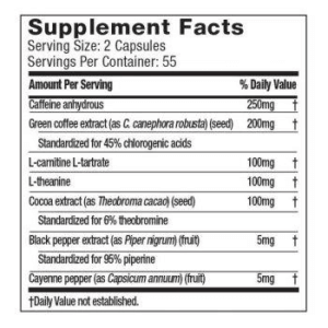 Caffeine là một trong những thành phần phổ biến nhất trong các Thực phẩm bổ sung hỗ trợ giảm cân. Vô số nghiên cứu đã chỉ ra, nó là một chất rất hiệu quả trong việc tăng cường đốt mỡ trong cơ thể và tạo ra năng lượng. Caffeine cũng giúp chống lại hiện tượng thèm ăn và giúp tăng cường độ tập trung và hiệu quả tập luyện.