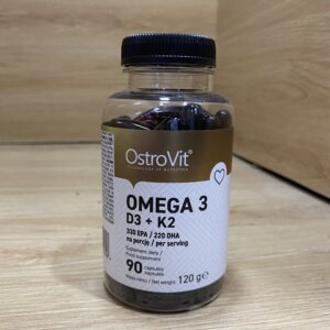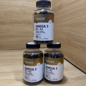 OstroVit Omega 3 D3 + K2 là một Thực phẩm bổ sung 3 trong 1 được chiết xuất dưới dạng viên nang mềm, có chứa axit béo omega 3 (EPA và DHA) và vitamin D3, K2, cũng như D-alpha-tocopherol tức là Vitamin E.