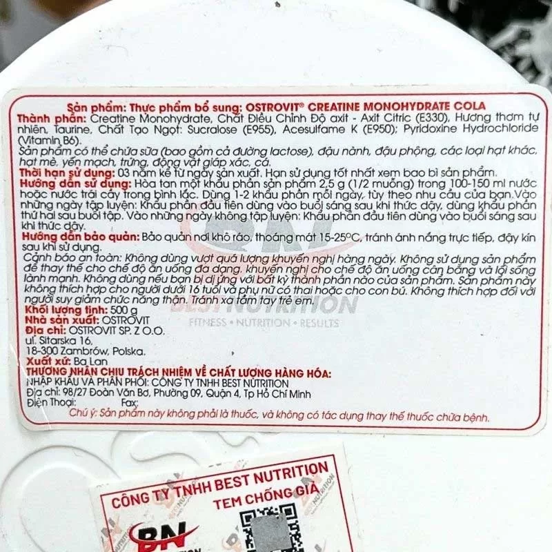 Creatine Monohydrate 500g được nghiên cứu và sản xuất bởi hãng Ostrovit – nhà cung cấp các dưỡng chất thể thao có nguồn gốc tự nhiên số 1 tại Ba Lan. Ra đời từ năm 2013, Ostrovit nhanh chóng khẳng định vị thế của mình trên thị trường Ba Lan và vươn ra tầm quốc tế với hơn 100 quốc gia phân phối sản phẩm. Ostrovit luôn chú trọng vào việc sử dụng nguyên liệu cao cấp, đa số là thành phần tự nhiên và không chứa chất độc hại, được kiểm định nghiêm ngặt và sản xuất theo quy trình hiện đại. Các sản phẩm của Ostrovit đều được chứng nhận an toàn và hiệu quả bởi các tổ chức uy tín.