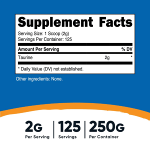 Nutricost Taurine Powder, 250 Grams (125 Servings)