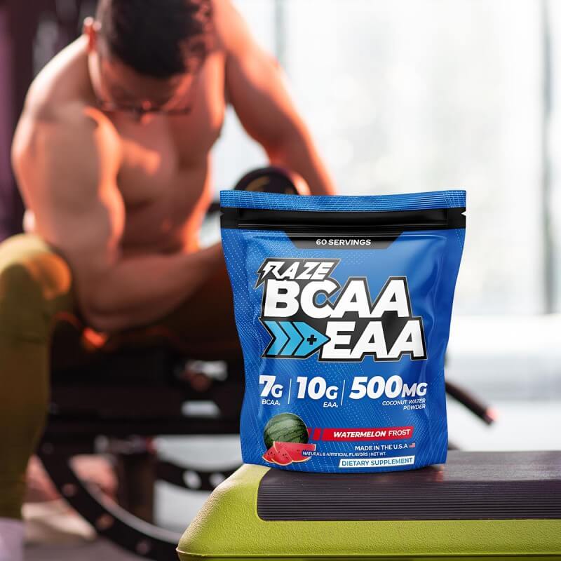 Raze BCAA + EAA 60 servings chứa 7g BCAA tỷ lệ 3:1:1 tiêu chuẩn. Đây là công thức vàng giúp tối ưu hóa tốc độ phục hồi cơ bắp đã được áp dụng vào rất nhiều sản phẩm BCAA khác. 3 loại BCAA là Leucine, Isoleucine và Valine có nhiệm vụ chống dị hóa và tăng tốc độ phục hồi cơ bắp sau tập.