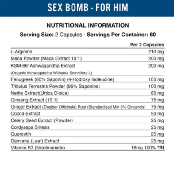 Sex Bomb For Him là viên uống hỗ trợ sức khỏe nam giới, giúp bạn cải thiện mức testosterone một cách tự nhiên, an toàn và hiệu quả. Sản phẩm được sản xuất bởi Applied Nutrition – một trong những thương hiệu thực phẩm bổ sung lớn nhất đến từ Anh Quốc. Đây cũng là nhà sản xuất của ABE Pre Workout trứ danh đã làm mưa làm gió trên thị trường trong nhiều năm, được mệnh danh là Pre Workout bán chạy nhất nước Anh.